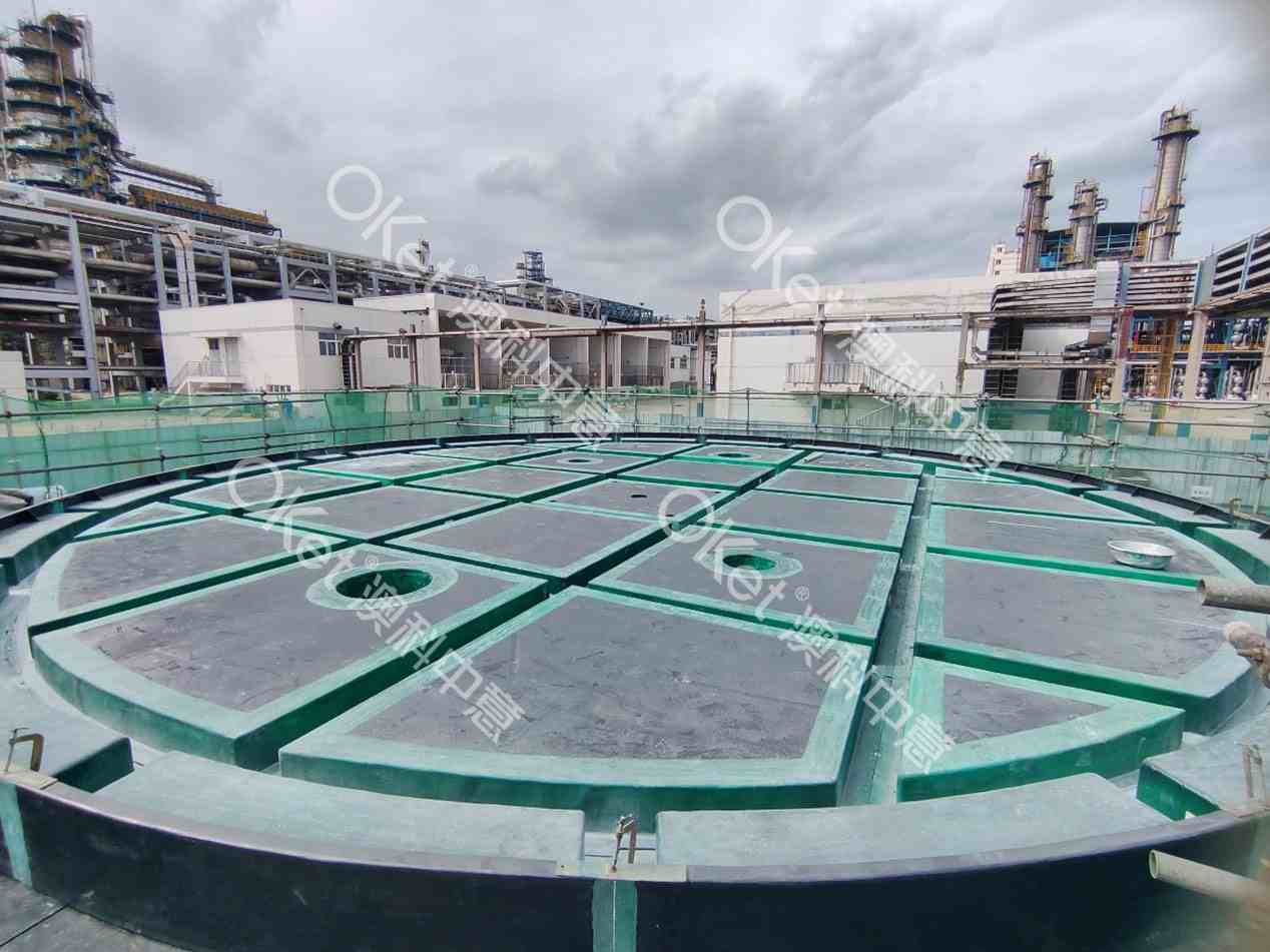 近日,中国石化青岛炼油化工有限责任公司在延迟焦化切焦水罐异味治理项目中,针对某罐开展专项改造,携手澳科中意采用全接液玻璃钢外浮顶施工技术进行升级。结合全接液玻璃钢外浮顶具备的模块化预制、耐腐蚀性强、无拼接缝、轻量化设计等产品技术优势、以及对浮顶密封结构的优化与科学规范的施工流程,不仅有效解决了切焦水罐的异味逸散问题,还显著提升储罐安全防护等级,为石化行业特殊介质储罐的环保化改造提供了优质范例。