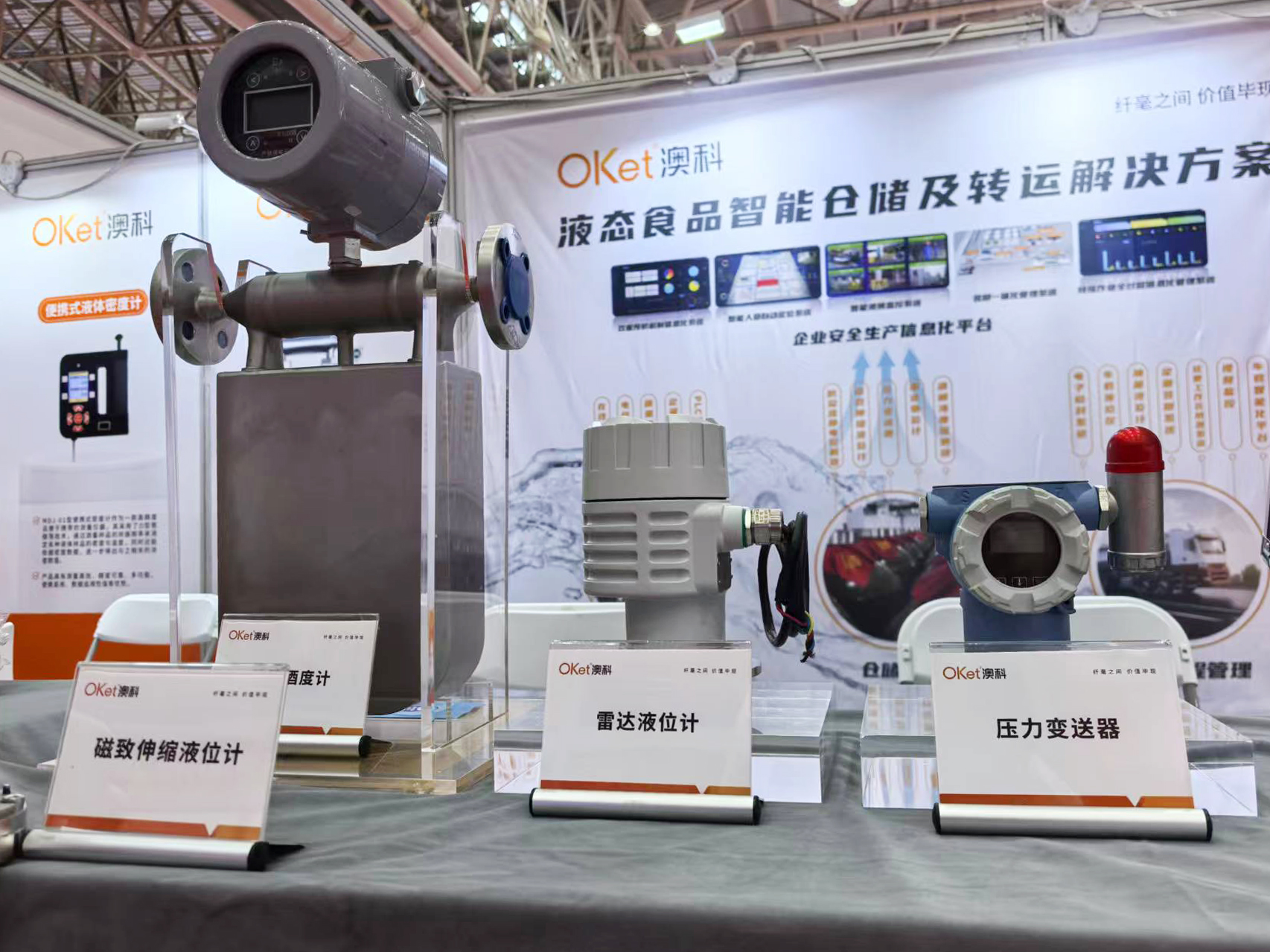 澳科携旗下雷达物位计、便携式液体密度计、质量流量计、酒精浓度探测器、压力变送器等核心设备精彩亮相,为酒业智能仓储及转运提供精准技术解决方案。